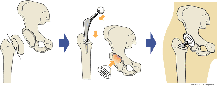 A. 股関節の場合、残念ながら脱臼ということがあります。たとえば先日ですが、人工関節手術をされて6年ほどたった患者さんが、年齢とともに腰が曲がって骨盤の位置が変わり、脱臼を繰り返されるので入れ替え手術をしました。また不幸にして感染を起こすケースなどもあります。
